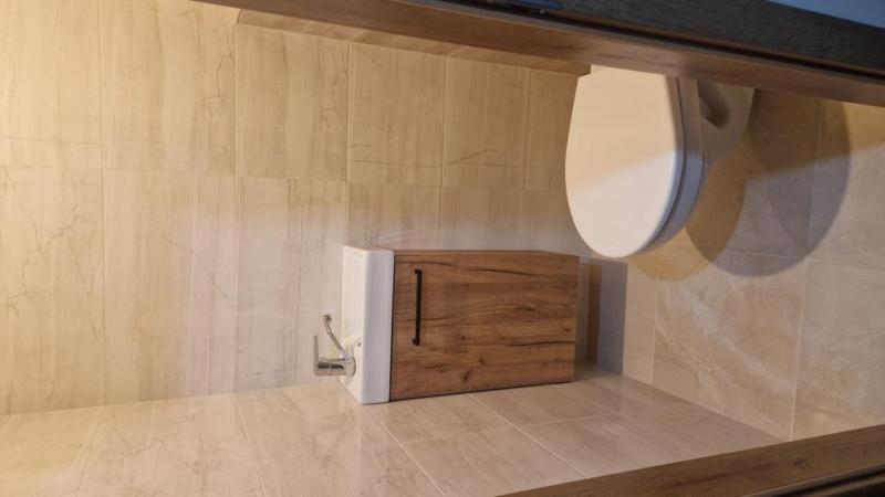 V dome je samostatné wc, špajza a kúpeľňa s vaňou a sprch. kútom. Na povale sa nachádza úložný priestor na sezónne veci